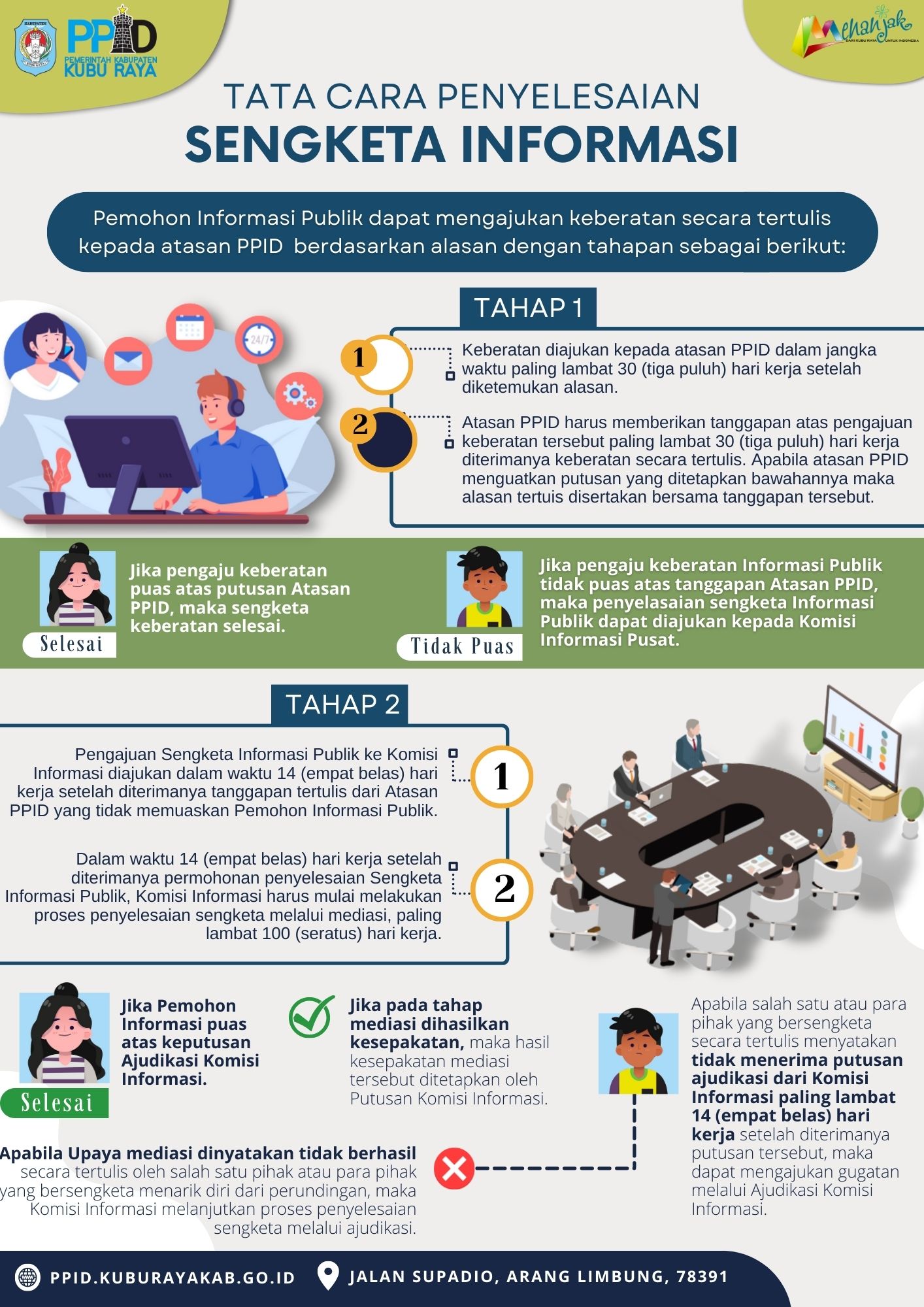 - Pemohontidakmendapatkantanggapanataskeberatan yang telahdiajukankepadaatasan PPID dalamjangkawaktu 30 (tigapuluh) harikerjasejakkeberatanditerimaolehatasan PPID