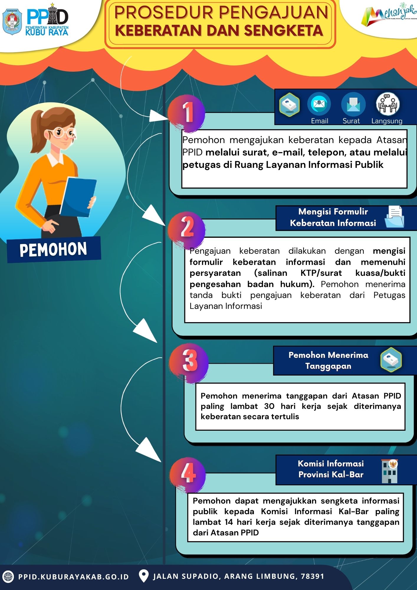 - Pemohontidakmendapatkantanggapanataskeberatan yang telahdiajukankepadaatasan PPID dalamjangkawaktu 30 (tigapuluh) harikerjasejakkeberatanditerimaolehatasan PPID